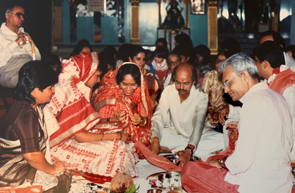 Jay proposed in 1987, while we were on a camping trip in Gatlinburg, Tennessee. We were in our tent and I just looked at him and said “Yes”! He already had everything planned for the wedding – a priest and a chateau with champagne. After the ceremony, Jay called his brother in Florida, to inform him of the wedding. His brother remembered me as the girl with beautiful eyes from when I used to go to their home to play with Uru, while in high school. He was not happy with our ‘elopement-style wedding’ and gave us marching instructions to return to our respective homes, when we got back to New York. He then called my brother in the following week, to formally ask for my hand in marriage to Jay, and that is how we ended up getting married Indian-style, with the priest at the Geeta Temple in Queens, New York.